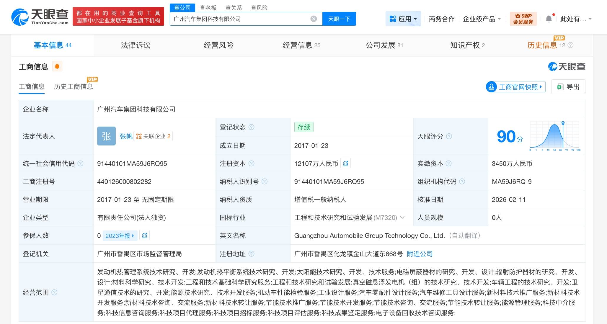 广汽集团科技公司增资至1.2亿 增幅约25%