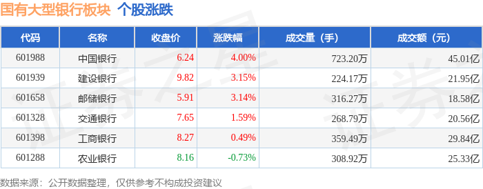 国有大型银行板块11月20日涨0.89%,中国银行领涨,主力资金净流入6.24亿元
