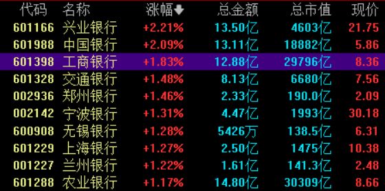 银行股全线上涨,工行、农行创新高