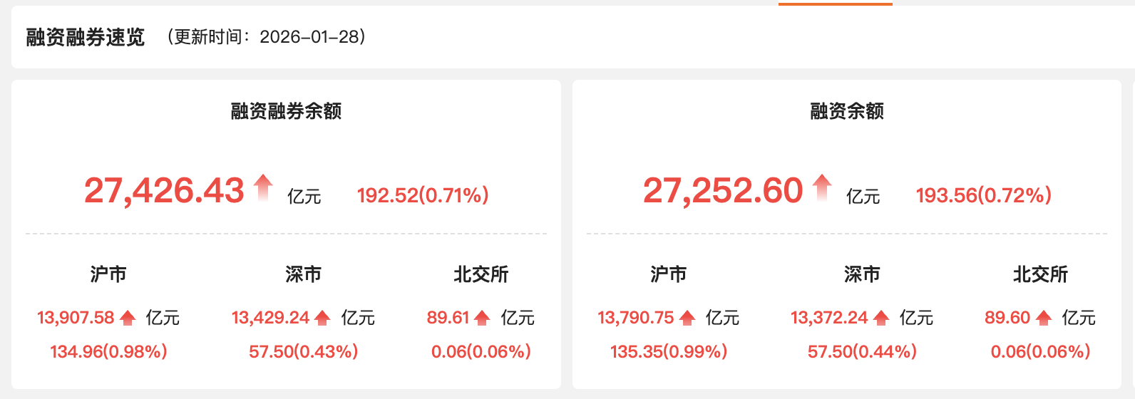 融资融券周报:主要指数多数上涨,两融余额继续上升-20260128