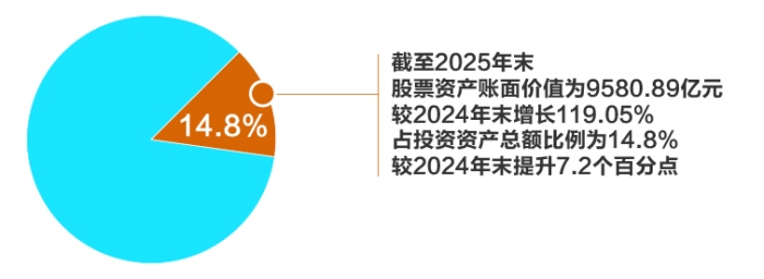 2025年,中国平安在资本市场频频举牌,加大对权益类资产布局。 中国平安保险资金投资业绩优良,资产配置能力保持长期稳定。截至2025年末,公司保险资金投资组合 规模约为6.49万亿元,较2024年末增长约13.2%。2025年,公司保险资金投资组合实现综合投资收益率 6.3%,同比上升0.5个百分点;近10年平均净投资收益率为4.8%,近10年平均综合投资收益率为4.9%。 截至2025年末,中国平安股票资产账面价值为9580.89亿元,较2024年末增长119.05%;股票资产占投资 资产总额比例为14.8%,较2024年末提升7.2个百分点。业内人士认为,股票资产账面价值大幅提升可能 受两方面因素影响:一是加大股票资产投资;二是持有股票资产升值。 中国平安股票资产占比提升 ◎记者 何奎 3月26日晚,中国平安发布的2025年年报显示:公司实现归属于母公司股东的营运利润1344.15亿元,同 比增长10.3%;归属于母公司股东的扣非净利润1437.73亿元,同比增长22.5%。截至2025年末,公司归 属于母公司股东权益首次突破万亿元,为10004.19亿元,较2024年末增长约7.7%;股票资产账面价值为 ...