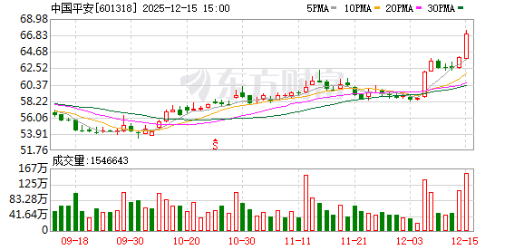 中国平安12月15日收盘涨4.96% 股价创下近4年新高