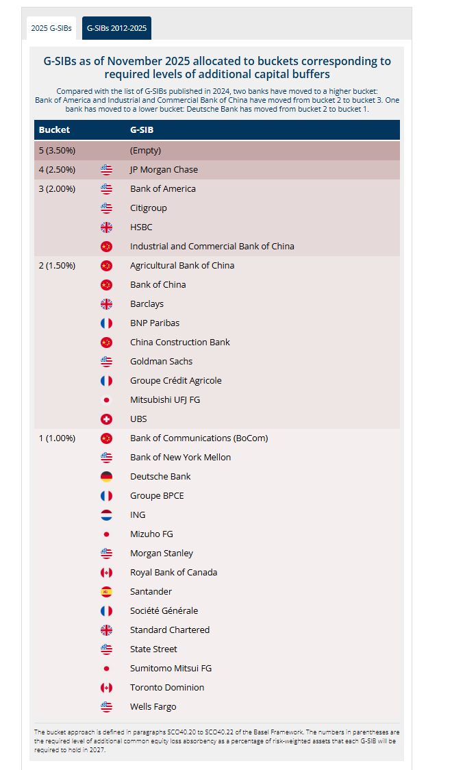 Key TakeawaysThe Financial Stability Board (FSB) has released its 2025 list of Global Systemically Important Banks (G-SIBs), identifying 29 institutions including Bank of America (BAC) and Industrial and Commercial Bank of China (1398.HK).Bank of England (BoE) official Greene indicated that most policy rules suggest keeping interest rates steady, despite expressing concern over shifts in wage and price-setting behavior.Greene noted that wage growth, while still elevated, is moving in the right direction, an ...