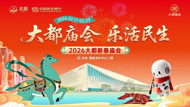 这个春节 北辰集团×中国民生银行联手放大招 2026大都新春庙会 放!票!啦! 2026大都新春庙会由北京市国资委、市经信局、市商务局、市文旅局、市科学技术协会、朝阳区政府及 中国乡村发展协会等多部门和协会联合指导,北辰集团主办,首都会展集团承办。活动落位中轴线北延 长线上的"国家会客厅"——国家会议中心(二期),将在春节期间为北京市民与来京游客带来一场高品 质的新春文化盛宴。 2026大都新春庙会以"国家会客厅,百姓喜乐荟"为主题,玩出三大新花样:科技感拉满AR体验、机 器人互动;国际范十足邂逅全球新春年味儿,让异国风情碰撞中式新春;中国味更浓汉服巡游、 糖画面人剪纸非遗手作全上阵,随手一拍就是年味大片!传统年俗 × 未来科技,这次玩出新花样! 6万㎡全室内恒温庙会,热乎过大年! 这个春节 传统民俗l 郁物 BA Chinese Folk Traditions Experience 册 t Home 03 国潮非遗▷ Intangible Cultural Herito Guochao) Alley 04 球 站 玉 / X / 情 World Cultures Showcase 05 国风妆 Chines ...