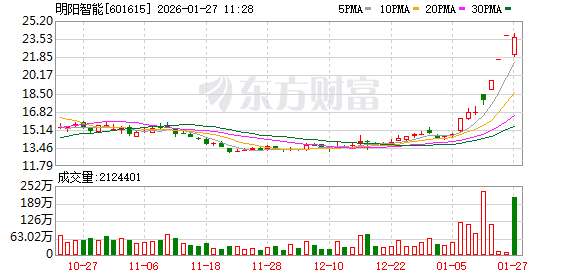 登录新浪财经APP 搜索【信披】查看更多考评等级 证券代码:601615 证券简称:明阳智能公告编号:2026-013 明阳智慧能源集团股份公司 股票交易异常波动公告 ● 根据中上协行业分类,公司所属通用设备制造业,截至2026年1月26日止,公司最新市盈率为 155.64,同行业最新静态市盈率51.26,高于同行业平均水平。公司提醒广大投资者注意二级市场交易风 险,审慎决策,理性投资。 一、股票交易异常波动的具体情况 公司股票于2026年1月23日、2026年1月26日连续2个交易日内收盘价格涨幅偏离值累计超过20%。根据 《上海证券交易所交易规则》的有关规定,公司股票交易属于异常波动情况。 二、公司关注并核实的相关情况 (一)生产经营情况 公司目前内部生产经营秩序正常,公司所处的行业市场环境无其他重大变化,不存在应披露而未披露的 重大信息。公司前期披露的信息不存在需要更正、补充之处。 (二)重大事项情况 公司拟通过发行股份及支付现金购买资产的方式,向中山德华芯片技术有限公司(以下简称"德华芯 片")的9名股东购买其合计持有的德华芯片100%股权;同时,公司拟向不超过35名符合中国证监会条 件的特定投资者发 ...