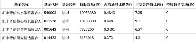 数据显示,汇丰晋信基金旗下4只基金重仓明阳智能股票,合计持有明阳智能3506.69万股,按前一日收盘 21.65元,今日截止发稿股价23.82元计算,日浮盈7609.52万元。连续10天上涨期间浮盈赚取0元。 | 基金名称 | 基金代码 | 基金经理 | | 持股数量(股) 占流通股比例(%) | | 占基金净值比(%) 持股数量变动(股) | | --- | --- | --- | --- | --- | --- | --- | | 汇丰晋信动态策略混合A | 540003 | 陆彬 | 10953380 | 0.4843 | 7.25 | 0 | | 汇丰晋信核心成长混合A | 011578 | 陆彬 | 10133300 | 0.448 | 9.11 | 0 | | 汇丰晋信智造先锋股票A | 001643 | 陆彬 | 7827200 | 0.3461 | 6.57 | 0 | | 汇丰晋信研究精选混合 | 014423 | 陆彬 | 6153018 | 0.272 | 4.21 | 0 | 其中,汇丰晋信动态策略混合A(540003)四季度持有股数1095.34万股,与上期相比持股数量不变,占基金 ...