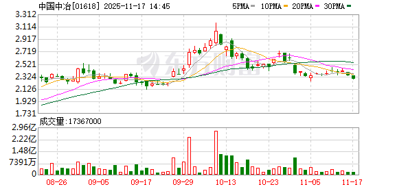 此外,光大证券近期研报指出,受钢铁、建筑及地产行业下滑影响,25年前三季度公司经营持续承压, 该行下调公司25-26年归母净利润预测至47.9/49.9亿元(下调幅度分别为30%、26%),新增27年归母净利 润预测为52.3亿元。该行仍看好公司海外及资源业务发展,对公司A股和H股均维持"买入"评级。 中国中冶(601618)(01618)跌近3%,截至发稿,跌2.99%,报2.27港元,成交额3767.92万港元。 消息面上,11月14日,中国中冶发布公告称,公司2025年1-10月新签合同额人民币8450.7亿元,较上年 同期降低11.8%,其中新签海外合同额人民币711.6亿元,较上年同期增长7.3%。 ...