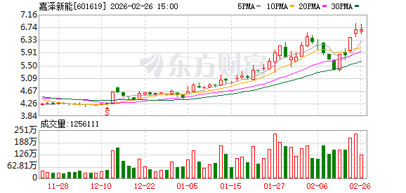 数据显示,东证资管旗下1只基金位居嘉泽新能十大流通股东。东方红新动力混合A(000480)四季度 新进十大流通股东,持有股数2015.08万股,占流通股的比例为0.83%。根据测算,今日浮盈赚取约 685.13万元。连续3天上涨期间浮盈赚取1672.52万元。 2月27日,嘉泽新能涨5.11%,截至发稿,报7.00元/股,成交8.66亿元,换手率5.20%,总市值203.89亿 元。嘉泽新能股价已经连续3天上涨,区间累计涨幅14.24%。 资料显示,嘉泽新能源股份有限公司位于宁夏回族自治区银川市兴庆区兴水路1号绿地21城企业公园D 区68号楼,成立日期2010年4月16日,上市日期2017年7月20日,公司主营业务涉及新能源发电业务、新 能源电站的开发-建设-出售业务、新能源发电资产管理和新能源产业基金业务。主营业务收入构成为: 新能源电站开发-建设-运营-出售93.64%,屋顶分布式光伏3.27%,新能源电站运维管理服务2.57%,其 他(补充)0.52%,新能源产业基金0.00%。 从嘉泽新能十大流通股东角度 东方红新动力混合A(000480)成立日期2014年1月28日,最新规模42.28亿。今年以来收 ...