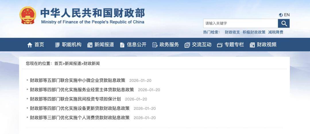 21世纪经济报道记者张欣 1月20日,国新办举行新闻发布会,财政部副部长廖岷围绕发挥积极财政政策作用、推动经济社会高质量发展作详细介绍,重点解读了财政金融促内需一揽 子政策。在前期支持政策基础上,财政部联合相关部门一次性推出六项政策,其中两项优化型贴息政策备受关注——服务业经营主体贷款贴息政策与个人消 费贷款贴息政策。 同日,农行、中行、邮储银行、交行等多家国有大行迅速响应,同步出台配套实施细则,其中信用卡账单分期正式纳入贴息范围,成为本次政策优化的核心 亮点,精准惠及居民消费与服务业经营主体。 个人消费贷款贴息政策农行、中行、邮储银行三家银行统一执行,实施期为2025年9月1日至2026年12月31日。 服务业经营主体贷款最新贴息政策目前只有农行发布,其实施期限同样延长至2026年12月31日,其中2025年3月16日至2025年12月31日期间发放的符合贴息 条件的贷款,继续按原规定执行。 二、贴息范围优化 1. 新增信用卡业务:将信用卡账单分期(农行、中行特别强调仅支持人民币信用卡账单,邮储未提及)纳入贴息范围,2026年1月1日至12月31日期间新办理 的该业务,经银行核查真实性、合规性后可享受贴息。 ...