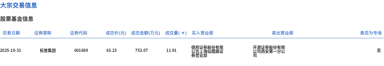 拓普集团今日大宗交易折价成交11.91万股,成交额753.07万元