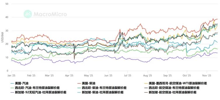 据路透社消息,2025年11月以来,乌克兰对俄罗斯能源基础设施发动多轮无人机袭击,目标直指炼油厂及石油码头。仅11月15日至17日,梁赞炼油厂、新 库伊比雪夫斯克炼油厂及伏尔加格勒炼油厂便遭重创,其中梁赞炼油厂作为俄罗斯四大炼油厂之一,年处理能力达1310万吨原油(日均34万桶),其原油 蒸馏装置和燃料储存罐受损,导致俄罗斯整体炼油量下降6%。此外,伏尔加格勒炼油厂因袭击多次停产,该厂年产能达1570万吨,是卢克石油公司核心 产能之一。 据统计,自2025年1月以来,乌克兰已累计袭击俄罗斯至少4座炼油厂及2个石油码头,导致俄成品油出口能力大幅下降,同时全球硫黄市场也因俄罗斯供 应收缩而价格飙升。这一系列连锁反应不仅重塑了全球能源格局,更为中国成品油出口和硫黄产业带来新的发展机遇。 全球成品油裂解价差扩大 硫黄价格飙升 俄罗斯炼油产能锐减直接推高了海外成品油裂解价差。数据显示,2025年11月中旬以来,海外成品油裂解价差呈全线飙升态势,柴油领涨各类油品,衡量 炼油利润的核心指标3-2-1裂解价差创近两年新高,炼油行业迎来高盈利周期。11月18日,全球3-2-1裂解价差触及$32.13/桶,为2024年3月以来最 ...