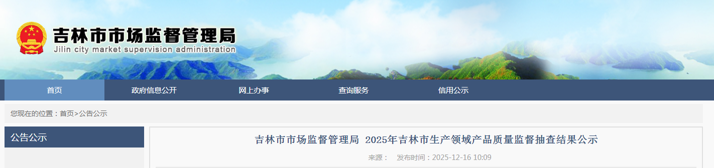 2025年吉林省吉林市生产领域产品质量监督抽查结果公示