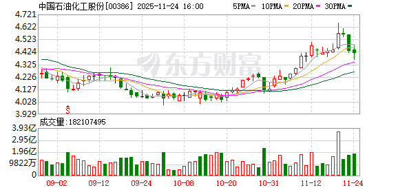 中国石油化工股份(00386)11月24日斥资1778.61万港元回购405.4万股