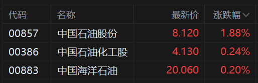港股异动丨三桶油普涨 中国石油涨约2% 三季报业绩表现稳健