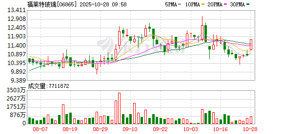 该行指出,公司盈利能力维持较高水平。6-7月光伏玻璃行业加速冷修,据卓创资讯,7月行业冷修产线 达7750吨/日,国内在产产能下降至8.9万吨/日;8-9月光伏玻璃价格上涨后并未出现大规模产能复产/点 火,国内在产产能维持在较低水平。光伏玻璃作为光伏主辅材中过剩程度相对较低的环节,目前产能较 前期高点已有显著下降,随着落后企业陆续推出,市场化出清有望加速。 消息面上,福莱特发布公告,第三季度实现营收47.3亿元,同比增长21%、环比增长29%,实现归母净 利润3.76亿元,同比扭亏、环比增长143%,业绩超预期。国金证券发布研报称,三季度公司实现营业 收入47.3亿元、环比大幅增长29%,测算公司光伏玻璃出货量环比显著提升,预计公司Q3加速去库, Q3末公司存货余额环比下降7.51亿元至12.07亿元。 智通财经APP获悉,福莱特玻璃(06865)早盘涨超8%,截至发稿,涨5.64%,报11.43港元,成交额 5881.21万港元。 ...
