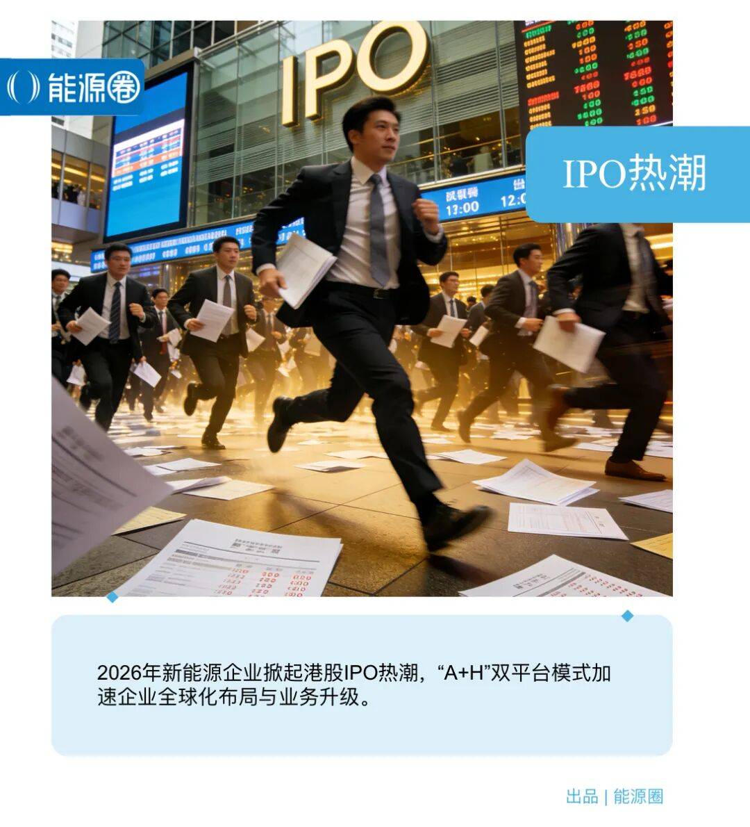 2026年开年,港股IPO市场迎来一批新能源领域的领先企业。1月2日, 亿纬锂能率先扛起大旗,再次向港交所主板递交上市申请;随后, 万帮数字能 源、鹏辉能源、正泰电器等企业也纷纷公布赴港上市计划。 1月27日,A股上市公司 德业股份正式递交港股上市申请,迈出"A+H"双平台布局的关键一步。作为全球第一大户用储能逆变器提供 商,德业股份的加入 进一步扩大了储能企业在"A+H"双市场上市的阵容。 鹏辉能源于1月5日公告称,董事会已审议通过发行H股并在香港联交所主板上市的相关议案。该公司专注于储能、动力及消费电池,并根据港交所1月30 日披露,其已正式向港交所递交主板上市申请。 这一热潮延续了2025年"A+H"上市的趋势。数据显示, 2025年共有19家A股公司在香港上市,创下历史新高,融资总额达1399.93亿港元,占港股全年IPO 募资总额的一半以上。 七企赴港 2026年开年,新能源企业赴港上市呈现活跃态势。行业领军企业陆续公布赴港上市计划,持续推动"A+H"上市结构的热度。 亿纬锂能作 为全球少数全面布局消费、动力及储能电池的锂电池平台型企业之一,于1月2日再次向港交所主板递交上市申请,旨在为包括匈牙利工 ...
