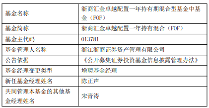 浙商证券资管旗下2只基金增聘陈正声