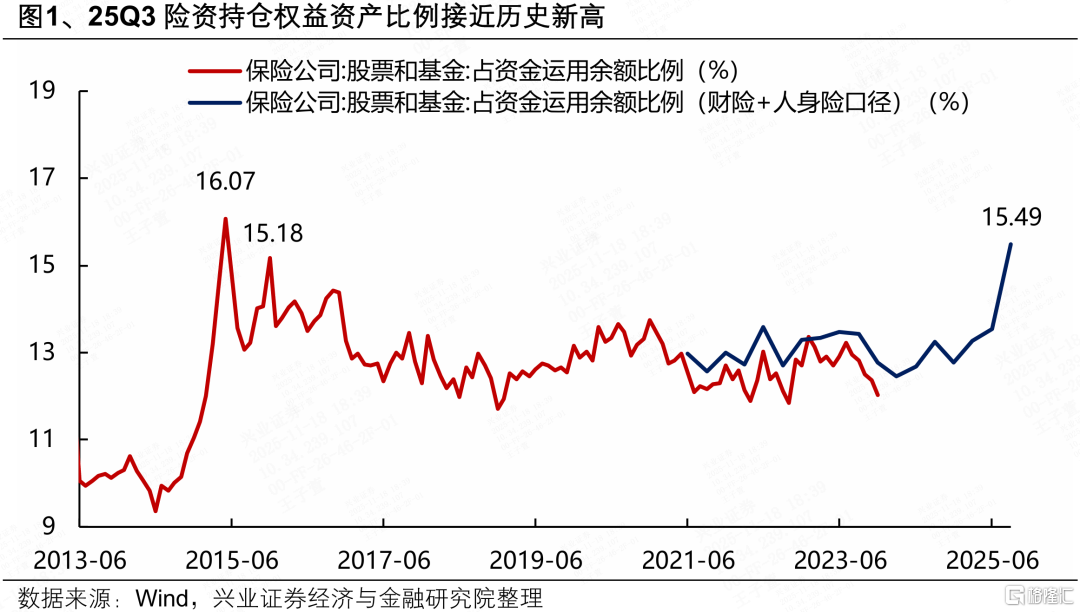 【兴证策略】25Q3险资持仓权益比例接近历史新高