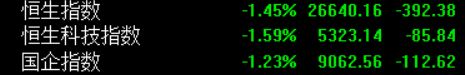 港股开盘:恒指跌1.45%,恒生科指跌1.59%,科网股、黄金股普跌,紫金矿业、百度集团、哔哩哔哩跌逾3%