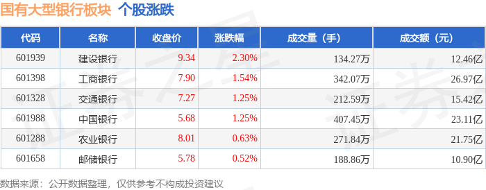 国有大型银行板块11月3日涨1.07%,建设银行领涨,主力资金净流入4.75亿元