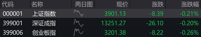 【开盘】A股三大股指集体小幅低开,沪指跌0.21%报3901.13点