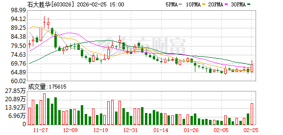 证券代码:603026 证券简称:石大胜华 公告编号:2026-011 本公司董事会及全体董事保证本公告内容不存在任何虚假记载、误导性陈述 或者重大遗漏,并对其内容的真实性、准确性和完整性承担法律责任。 重要内容提示: 一、 召开会议的基本情况 (一) 股东会类型和届次 2026年第三次临时股东会 召开的日期时间:2026 年 3 月 13 日 14 点 00 分 召开地点:山东省东营市垦利区同兴路 198 号石大胜华办公楼 A402 室 (五) 网络投票的系统、起止日期和投票时间。 股东会召开日期:2026年3月13日 本次股东会采用的网络投票系统:上海证券交易所股东会网络投票系统 (二) 股东会召集人:董事会 (三) 投票方式:本次股东会所采用的表决方式是现场投票和网络投票相结合 的方式 (四) 现场会议召开的日期、时间和地点 网络投票系统:上海证券交易所股东会网络投票系统 石大胜华新材料集团股份有限公司 关于召开2026年第三次临时股东会的通知 网络投票起止时间:自2026 年 3 月 13 日 至2026 年 3 月 13 日 采用上海证券交易所网络投票系统,通过交易系统投票平台的投票时间为股 东会召 ...