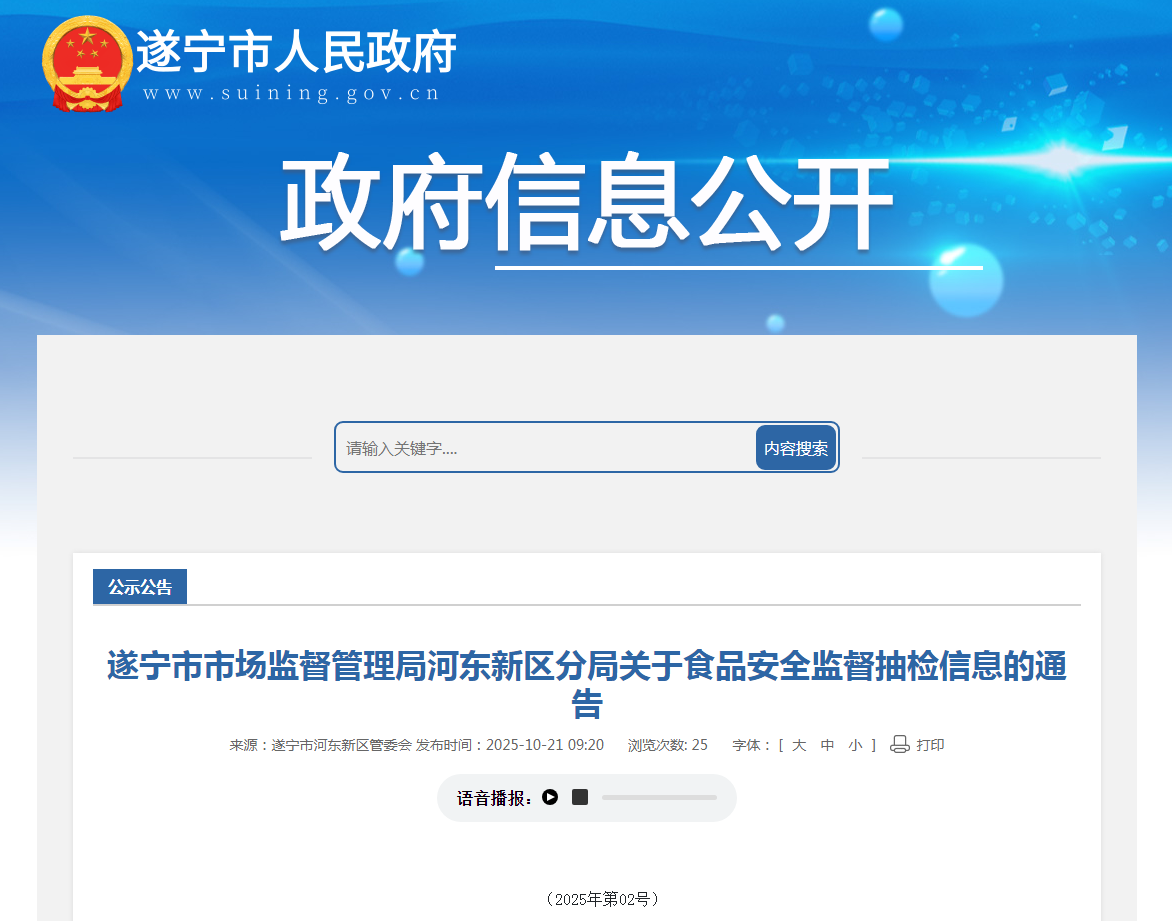 四川省遂宁市市场监督管理局河东新区分局关于食品安全监督抽检信息的通告(2025年第02号)