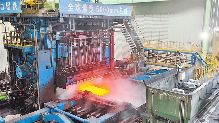 "这套5600毫米超宽轧机高17米,重达3100吨,2024年10月底成功试车,是公司精品特钢板材生产线核心设备 之一。"周钢宽厚板事业部有关负责人李珂介绍,板材从加热炉进入,经粗轧、水处理、精轧、矫直、热处 理、剪切精整等多个环节,全线实现远程智控作业。 "随着超宽轧机投产,我们的板材最大宽度可达5300毫米,厚度可达300毫米,为公司进军先进钢铁材料领域 提供了有力支撑。"周钢党委副书记、总经理牛庆林说。 一座内陆城市,何以诞生"世界之最"?答案藏在周口的产业新定位里,也写在周口港的崛起历程中。 1月22日,大雪初霁,大地银装素裹,沙颍河碧波如黛。沈丘城郊的周钢码头,货船静静停泊。3公里外的周 口钢铁有限责任公司(以下简称"周钢"),电动卡车在码头与厂区之间往来穿梭,勾勒出一幅临港产业的生 动图景。 作为周钢的"硬核旗舰",全球首条5600毫米超宽轧机宽厚板生产线正全速运转。长达1.4公里的生产线上,轧 机轰鸣,滚道流转,通红的钢板经轧机"巨掌"搓揉,被精准展宽压薄。 经多年系统布局建设,周口构建起"一港十区一核心"的港口体系,形成了长江以北规模最大、靠泊能力最强 的现代化内河港口集群。目前已开通国内外航 ...