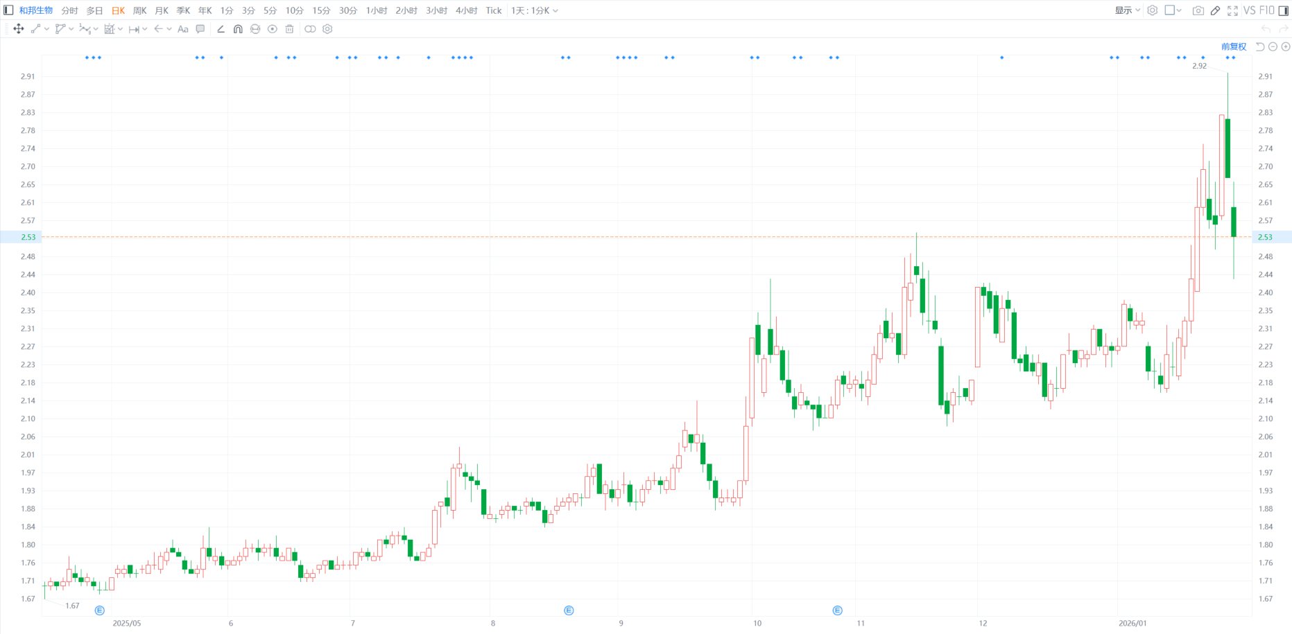 和邦生物(603077.SH)现跌5.24%报2.53元,暂成交13亿元,最新市值223.4亿元。和邦生物公布,经公司第六届董事会第二十七次会议审议通过,公司计划自 2026年3月2日至2026年9月1日期间,通过集中竞价交易方式减持前期已回购股份不超过176,630,744股(即不超过公司总股本比例的2%),减持价格按照市场价 格确定。(格隆汇) ...