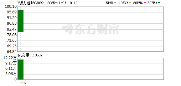 公司主营业务为高速重载精密齿轮传动产品的研发、生产与销售。 N德力佳今日上市,开盘价96.94元,上涨107.67%。 (文章来源:证券时报网) 证券时报·数据宝统计显示,公司本次发行总量为4000.01万股,其中,网上发行量为2342.90万股,发行 价格为46.68元/股,发行市盈率34.98倍,行业平均市盈率44.03倍,网上发行有效申购户数为1346.95万 户,网上发行最终中签率为0.02602442%。公司首发募集资金18.67亿元,募集资金主要投向年产1000台 8MW以上大型陆上风电齿轮箱项目、汕头市德力佳传动有限公司年产800台大型海上风电齿轮箱汕头项 目等。(数据宝) | 代码 | 简称 | 上市日期 | 发行价 | 发行市盈率 | 首日开盘涨跌幅 | 所属行业 | | --- | --- | --- | --- | --- | --- | --- | | | | | (元) | (倍) | (%) | | | 920003 | N中诚 | 2025.11.07 | 14.27 | 9.69 | 194.32 | 建筑装饰 | | 603092 | N德力佳 | 2025.11.07 | ...