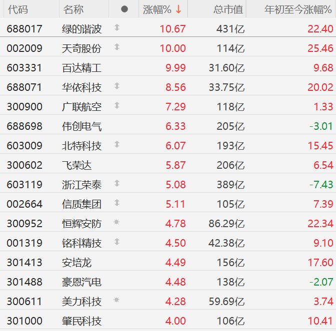 人形机器人概念股走强,绿的谐波等涨停、浙江荣泰涨超5%