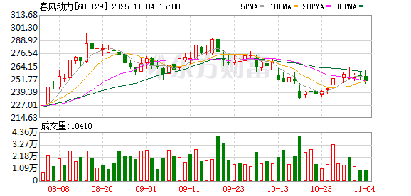 春风动力现7笔大宗交易 合计成交66.00万股