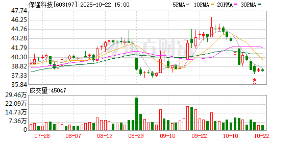 10月16日,保隆科技盘中下跌2.01%,截至14:24,报40.07元/股,成交1.56亿元,换手率1.80%,总市值 85.61亿元。 保隆科技所属申万行业为:汽车-汽车零部件-其他汽车零部件。所属概念板块包括:理想汽车概念、毫 米波雷达、汽车零部件、汽车电子、传感器等。 截至6月30日,保隆科技股东户数2.27万,较上期增加30.40%;人均流通股9394股,较上期减少 23.31%。2025年1月-6月,保隆科技实现营业收入39.50亿元,同比增长24.06%;归母净利润1.35亿元, 同比减少9.15%。 分红方面,保隆科技A股上市后累计派现7.71亿元。近三年,累计派现4.22亿元。 机构持仓方面,截止2025年6月30日,保隆科技十大流通股东中,香港中央结算有限公司位居第十大流 通股东,持股177.08万股,相比上期减少135.37万股。信澳匠心臻选两年持有期混合(010363)退出十 大流通股东之列。 责任编辑:小浪快报 资金流向方面,主力资金净流出732.43万元,特大单买入462.42万元,占比2.96%,卖出1033.31万元, 占比6.61%;大单买入2865.80万元,占比18.34 ...