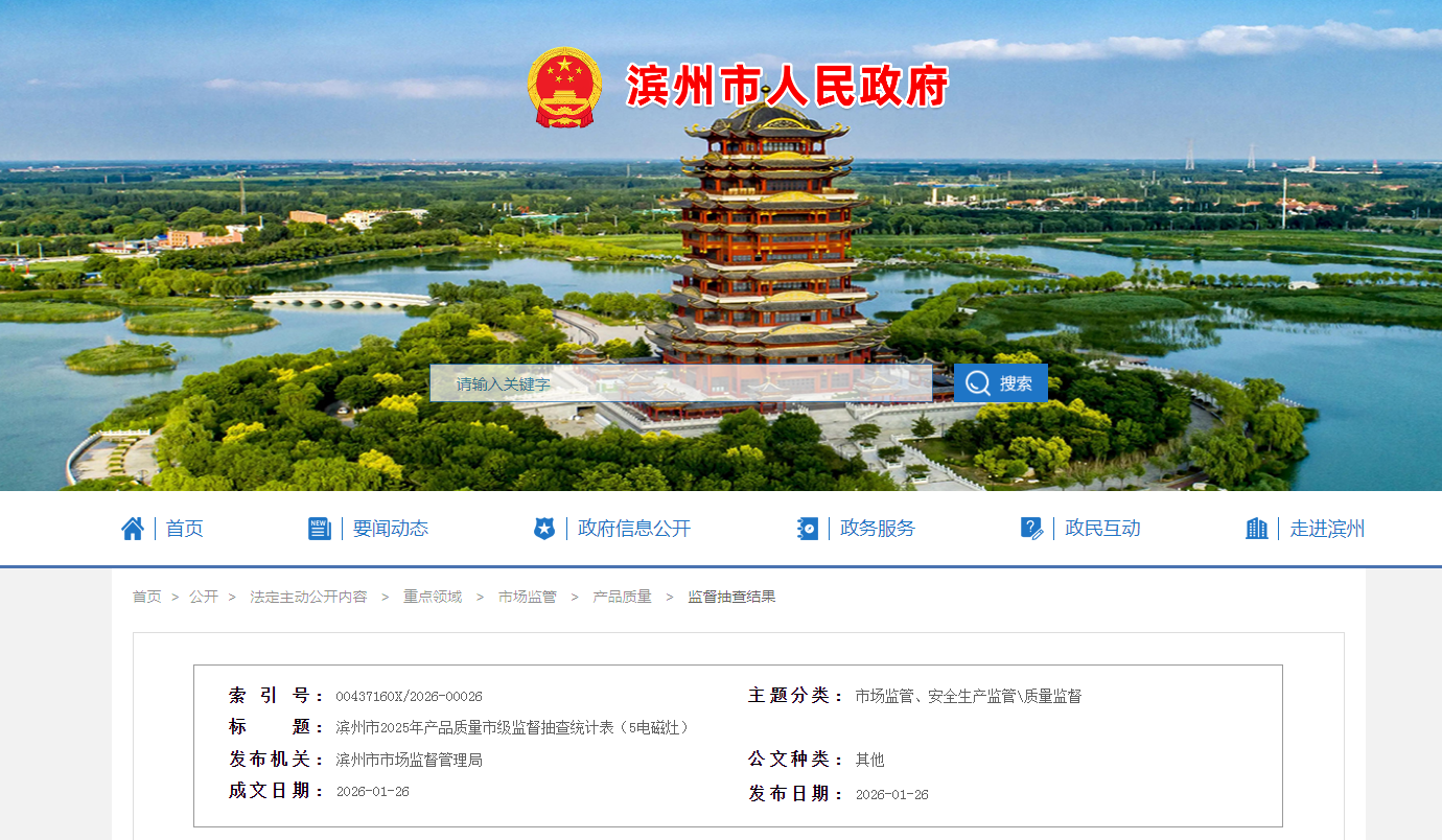 山东省滨州市市场监督管理局发布2025年产品质量市级监督抽查统计表(5电磁灶)