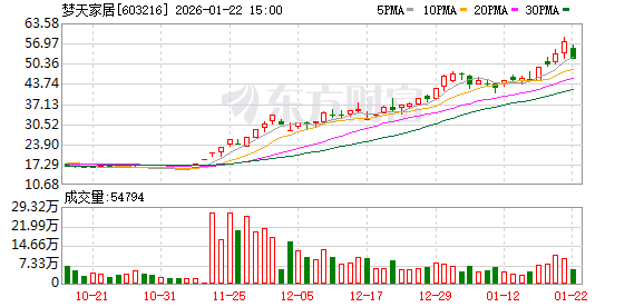 Core Viewpoint - Dream Home (sh603216) reached its daily limit up on January 20, 2026, with a price of 54.98 yuan, marking a 9.88% increase and a total market capitalization of 12.23 billion yuan [1] Group 1: Company Performance - Dream Home primarily engages in customized wooden furniture business, including wooden doors, wall panels, and cabinets, with significant revenue contributions from these categories in the first half of 2025 [2] - The revenue from high-margin wall panel products increased by 7.54%, with the gross margin rising to 41.02% [2] - Revenue from home decoration channels grew by 16.82%, with gross margin improving by 7.57 percentage points, indicating positive results from business expansion [2] Group 2: Financial Management - The company demonstrated good performance in fund management and cost control, with idle raised funds being managed in compliance with regulations [2] - Overall gross margin increased by 1.55%, and selling expenses decreased by 19.90 million yuan [2] - Operating cash flow surged by 29,138.89%, reflecting an improvement in the company's operational status [2] Group 3: Market Environment - Despite a complex overall market environment, the home furnishing industry may be experiencing a certain level of enthusiasm, as evidenced by the upward movement of some stocks in the sector on the same day [2] - Technical factors may have also contributed to the stock price increase, with potential positive signals in technical indicators attracting technical investors [2]