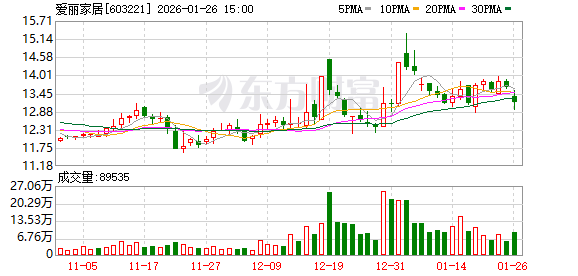 爱丽家居(603221)披露2025年年度业绩预告,1月23日股价下跌1.3%