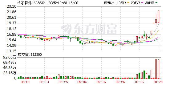 近日该股表现 | 日期 | 当日涨跌幅(%) | 换手率(%) | 主力资金净流入(万元) | | --- | --- | --- | --- | | 2025.10.27 | 3.91 | 37.20 | -31987.86 | | 2025.10.24 | 10.02 | 2.26 | 6122.78 | | 2025.10.23 | 10.03 | 16.12 | 24549.06 | | 2025.10.22 | -3.20 | 6.15 | -949.72 | | 2025.10.21 | 0.42 | 10.02 | 24.92 | | 2025.10.20 | -0.30 | 15.06 | -1162.97 | | 2025.10.17 | 3.24 | 12.99 | -243.16 | | 2025.10.16 | -2.14 | 11.02 | -4320.42 | | 2025.10.15 | 10.00 | 8.57 | 12423.30 | | 2025.10.14 | -1.65 | 2.03 | -298.47 | (文章来源:证券时报网) 格尔软件再度涨停,4个交易日内录得3 ...