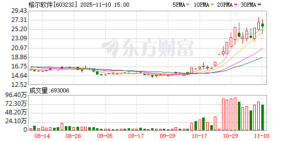 格尔软件股价涨5.01%,华宝基金旗下1只基金位居十大流通股东,持有280.65万股浮盈赚取359.23万元