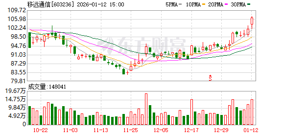 1月13日,移远通信跌5.02%,截至发稿,报101.21元/股,成交11.46亿元,换手率4.26%,总市值291.31 亿元。 资料显示,上海移远通信技术股份有限公司位于上海市松江区泗泾镇外婆泾路8号(横港路288弄1-5号), 成立日期2010年10月25日,上市日期2019年7月16日,公司主营业务涉及从事物联网领域无线通信模组 及其解决方案的设计、生产、研发与销售服务。主营业务收入构成为:模组+天线99.32%,其他 0.68%。 方旻累计任职时间11年59天,现任基金资产总规模247.04亿元,任职期间最佳基金回报213.26%, 任职 期间最差基金回报-97.17%。 风险提示:市场有风险,投资需谨慎。本文为AI大模型自动发布,任何在本文出现的信息(包括但不 限于个股、评论、预测、图表、指标、理论、任何形式的表述等)均只作为参考,不构成个人投资建 议。 责任编辑:小浪快报 从基金十大重仓股角度 数据显示,富国基金旗下1只基金重仓移远通信。富国中证1000指数增强(LOF)A(161039)三季度持有 股数6.67万股,占基金净值比例为0.6%,位居第四大重仓股。根据测算,今日浮亏损失约35.7万 ...
