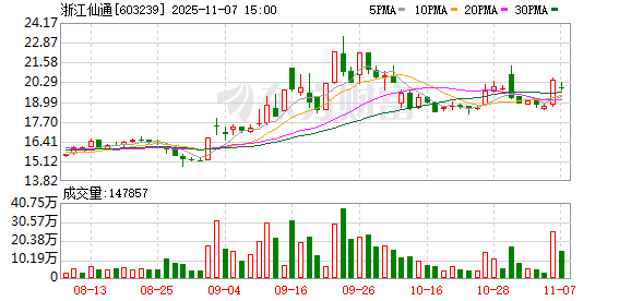 浙江仙通跌2.05%,成交额3749.44万元,主力资金净流出763.62万元