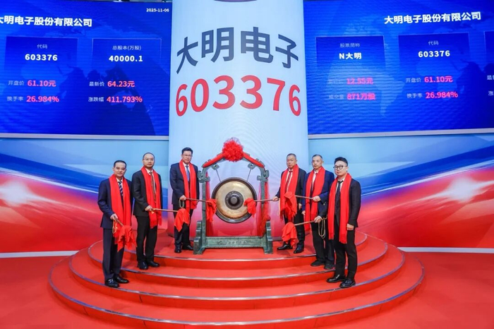 上市首日大涨413.5% 大明电子成功登陆上交所主板