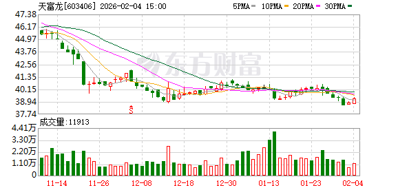 融资方面,天富龙当日融资买入515.10万元。当前融资余额1.00亿元,占流通市值的7.03%。 1月27日,天富龙跌0.17%,成交额9501.06万元。两融数据显示,当日天富龙获融资买入额515.10万 元,融资偿还650.07万元,融资净买入-134.97万元。截至1月27日,天富龙融资融券余额合计1.00亿 元。 融券方面,天富龙1月27日融券偿还0.00股,融券卖出0.00股,按当日收盘价计算,卖出金额0.00元;融 券余量0.00股,融券余额0.00元。 分红方面,天富龙A股上市后累计派现2.00亿元。 责任编辑:小浪快报 资料显示,扬州天富龙集团股份有限公司位于江苏省扬州市(仪征)汽车工业园联众路9号,成立日期 2009年5月11日,上市日期2025年8月8日,公司主营业务涉及差别化涤纶短纤维的研发、生产和销售。 主营业务收入构成为:差别化复合纤维64.50%,其中:低熔点短纤维59.63%,再生有色涤纶短纤维 30.48%,其中:聚烯烃复合短纤维4.13%,其他3.16%,其他(补充)1.87%,其中:热熔长丝0.65%,其中:中 空聚酯短纤维0.10%。 截至9月30日,天富龙股东户数3.2 ...