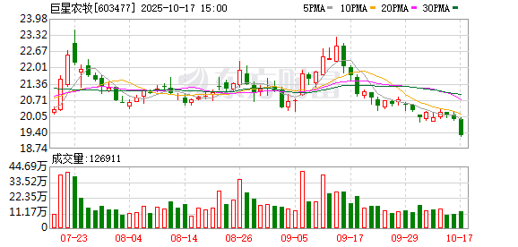 格隆汇10月20日|巨星农牧(603477.SH)今日盘中一度跌7.06%至17.91元,股价创今年3月12日以来逾7 个月新低。巨星农牧公告,股东四川和邦投资集团有限公司拟减持不超2%公司股份。(格隆汇) ...