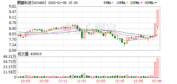 (编辑 任世碧) 证券日报网讯 1月8日,展鹏科技发布公告称,公司股票于2026年1月6日、1月7日、1月8日连续三个交 易日内收盘价格涨幅偏离值累计超过20%,属于股票交易异常波动。经公司自查,并向公司控股股东和 实际控制人核实,截至本公告披露日,确认不存在应披露而未披露的重大信息。公司2025年前三季度营 业收入约2.26亿元,归属于上市公司股东的净利润约-0.54亿元,处于亏损状态。敬请广大投资者注意二 级市场交易风险,理性决策,审慎投资。 ...