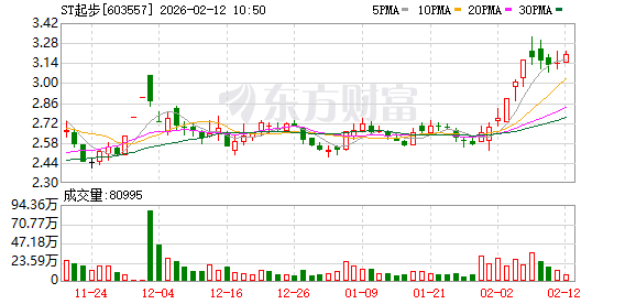起步股份有限公司 证券代码:603557 证券简称:ST 起步 公告编号:2026-014 股票交易异常波动公告 本公司董事会及全体董事保证本公告内容不存在任何虚假记载、误导性陈述 或者重大遗漏,并对其内容的真实性、准确性和完整性承担法律责任。 重要内容提示: 第 1页共 3页 审慎投资。 一、股票交易异常波动的具体情况 公司股票于 2026 年 2 月 2 日、2026 年 2 月 3 日、2026 年 2 月 4 日连续 3 个交易日内日收盘价格涨幅偏离值累计超过 12%,根据《上海证券交易所交易规 则》的有关规定,属于股票交易异常波动情形。 二、公司关注并核实的相关情况 (一)经公司自查,公司日常经营活动正常,市场环境、行业政策没有发生 重大调整,内部生产经营秩序正常,不存在应披露而未披露的重大信息。 (二)经公司自查,并书面征询公司控股股东湖州鸿煜和实际控制人陈丽红, 截至本公告披露日,公司控股股东湖州鸿煜和实际控制人陈丽红均不存在筹划影 响公司股票异常波动的重大事项,不存在应披露而未披露的重大信息,包括但不 限于重大资产重组、发行股份、上市公司收购、债务重组、业务重组、资产剥离 等重大事项。 (三) ...