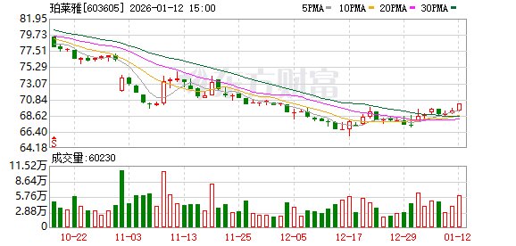 珀莱雅所属申万行业为:美容护理-化妆品-品牌化妆品。所属概念板块包括:电子商务、化妆品、价值 成长、中盘、融资融券等。 截至9月30日,珀莱雅股东户数8.41万,较上期增加39.53%;人均流通股4708股,较上期减少28.23%。 2025年1月-9月,珀莱雅实现营业收入70.98亿元,同比增长1.89%;归母净利润10.26亿元,同比增长 2.65%。 1月14日,珀莱雅盘中上涨2.01%,截至10:14,报71.68元/股,成交1.97亿元,换手率0.70%,总市值 283.84亿元。 资金流向方面,主力资金净流入637.31万元,特大单买入860.55万元,占比4.37%,卖出836.36万元,占 比4.25%;大单买入5510.97万元,占比28.01%,卖出4897.85万元,占比24.89%。 珀莱雅今年以来股价涨4.67%,近5个交易日涨4.22%,近20日涨7.50%,近60日跌7.75%。 资料显示,珀莱雅化妆品股份有限公司位于浙江省杭州市西湖区西溪路588号珀莱雅大厦,香港铜锣湾希 慎道33号利园1期19楼1919室,成立日期2006年5月24日,上市日期2017年11月15日,公司主营 ...