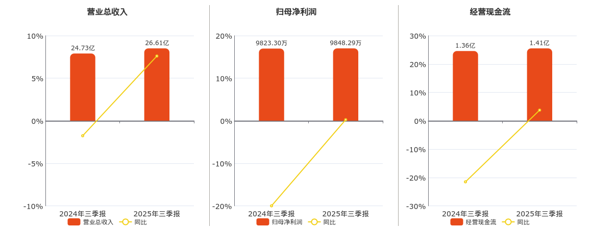 格隆汇10月27日丨五洲新春(603667.SH)发布三季报,2025年前三季度实现营业总收入26.61亿元,同比 增长7.6%;归属母公司股东净利润9848.29万元,同比增长0.25%;基本每股收益为0.27元。 ...