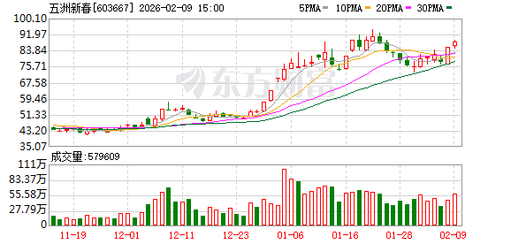 格隆汇2月10日丨五洲新春(603667.SH)涨7.36%,报94.500元,股价创历史新高,总市值346.06亿元。 ...