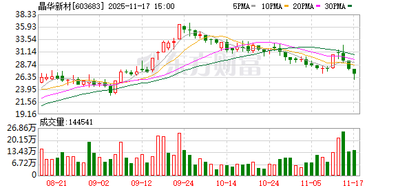 晶华新材:2719.98万股限售股将于11月21日上市流通