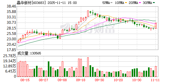 晶华新材11月5日现2笔大宗交易 总成交金额1010.51万元 溢价率为-8.50%